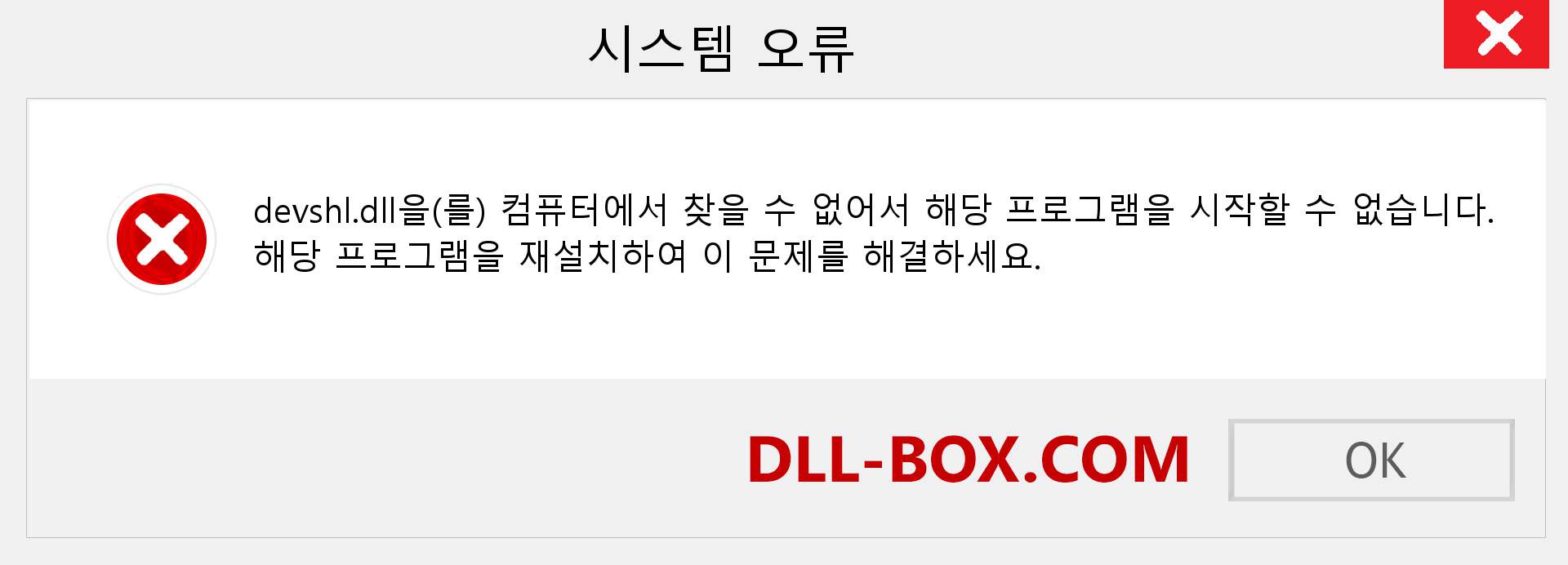 1. 컴퓨터에 devshl.dll가 없기 때문에 프로그램을 시작할 수 없습니다. 이 문제를 해결하려면 프로그램을 다시 설치해 보십시오.